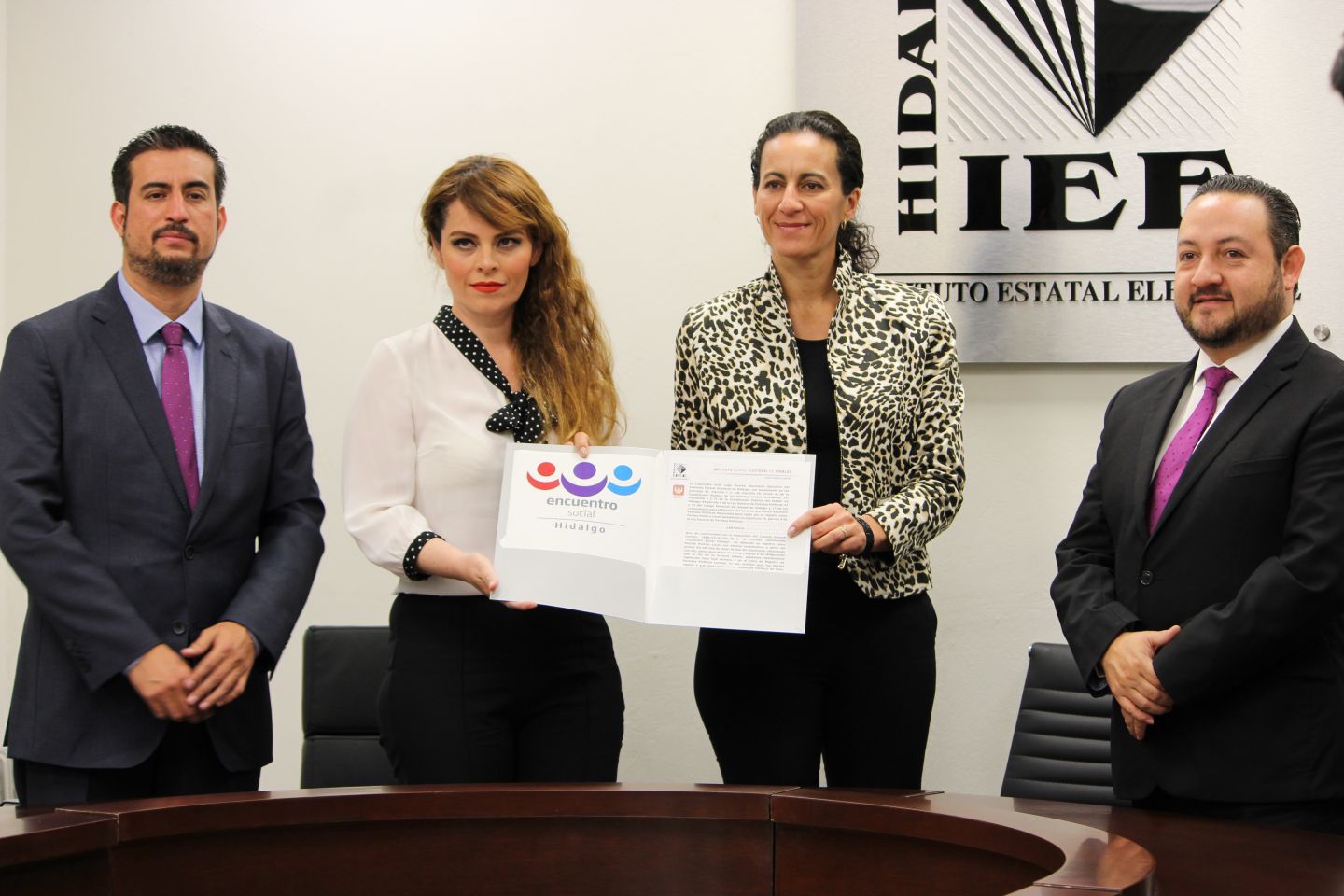 El documento que avala el Registro como Partido Político Local fue entregado al C.P. Daniel Andrade Zurutuza y a la Lic. Sharon Madeleine Montiel Sánchez de mano de la Consejera Presidenta, Guillermina Vázquez Benítez, del Secretario General Uriel Lugo Huerta y de las y los consejeros del Instituto Estatal Electoral de Hidalgo.
